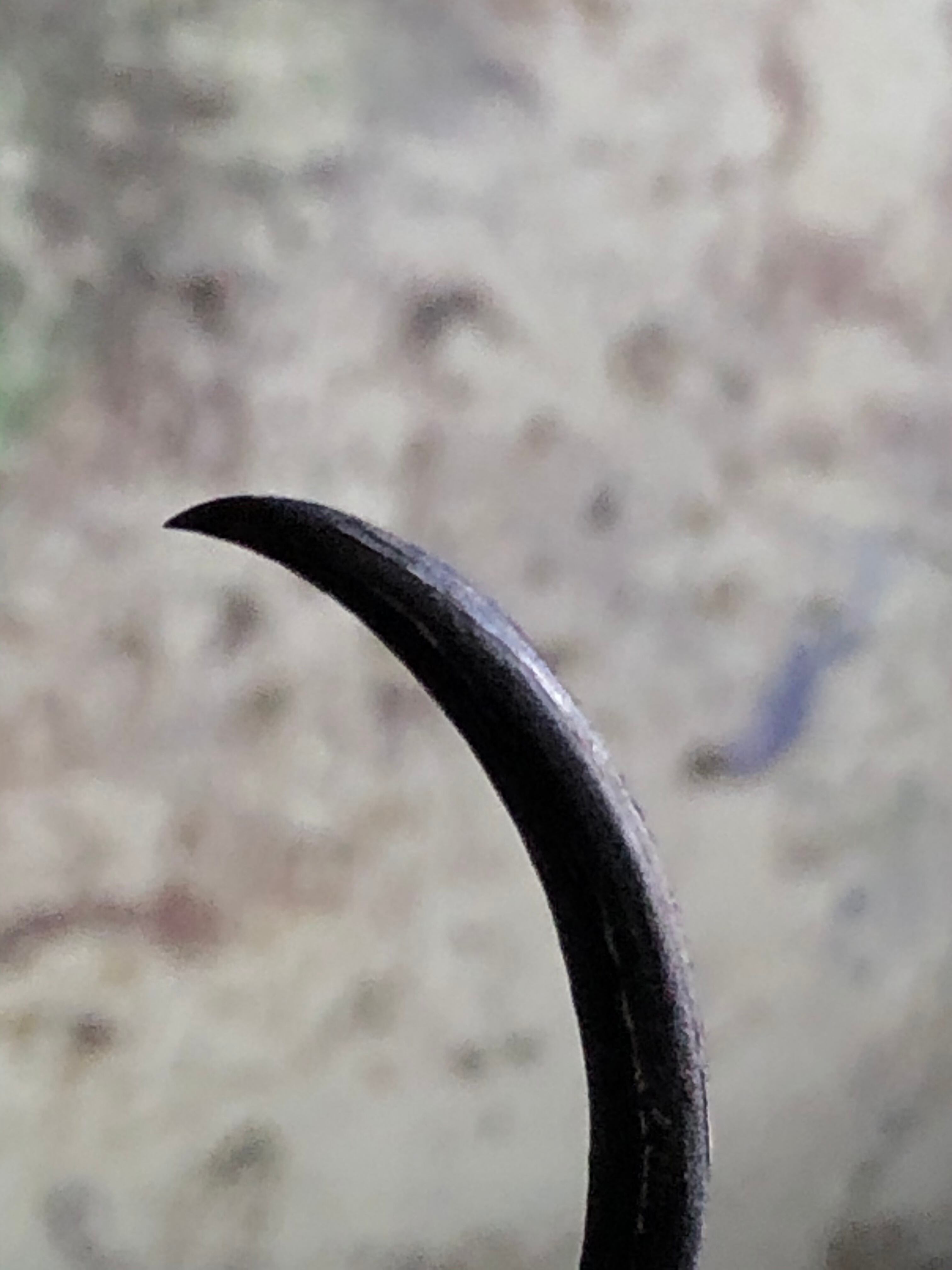 ユニークな2本の湾曲したかぎ爪と突起の多い